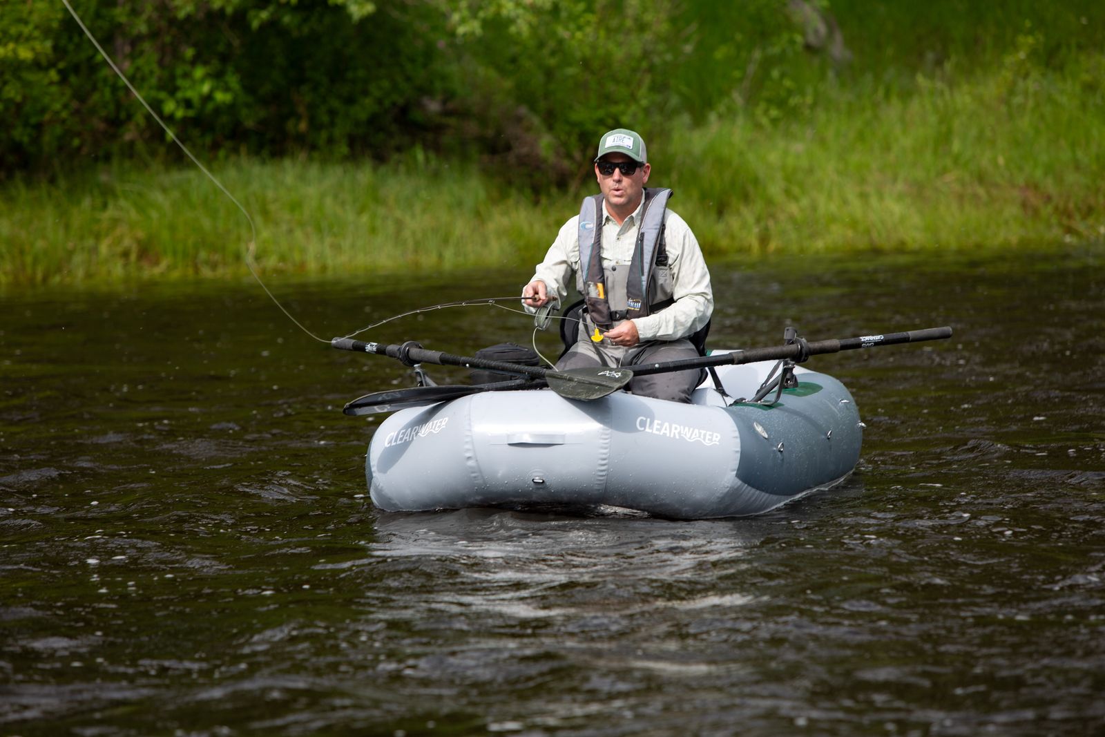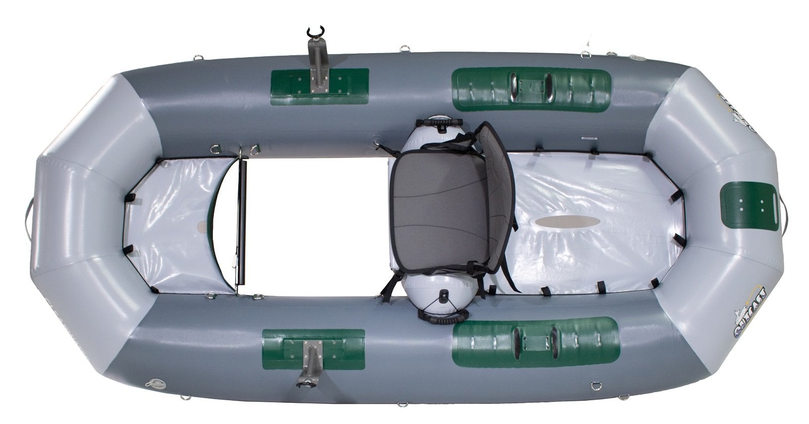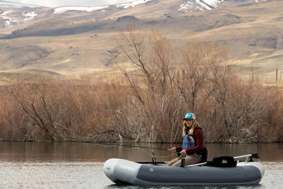 New for 2021, the OSG Clearwater is ready for big water and lots of gear. Using the open oarlock system, perfected on some of our multi-person rafts, it can accommodate longer/stronger oars for conditions when you need to put more oomph into your stroke. The Clearwater has a trampoline style cargo space in front and back for securing lots of gear. It has a 450lbs load capacity but weighs in at just under 35lbs. The high-back seat rests on inflatable thwart so the rower has great visibility and making it great for longer days on the water and even short expedition trips. Bonus, no trailer is needed and will fit in the bed of pick-up or can be car-topped for easy transport to your next fishing spot.Specs: