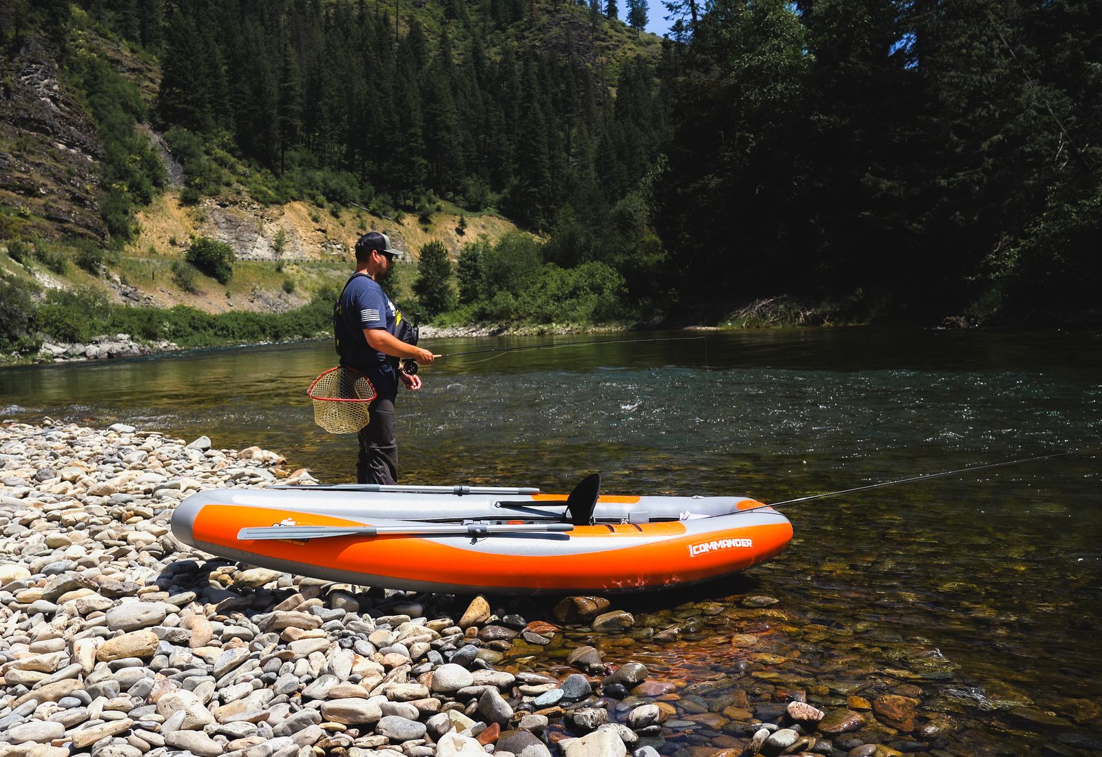 The OSG Commander has been redesigned for more comfort and versatility on fishing adventures. The stern now has an IGS pocket for an anchor or motor mount and the bow has more room to accommodate fins. The Commander is 10 ft long and 47 in wide for a stable ride as you glide over rolling waves down a river. The low profile design helps the boat navigate in windy conditions.